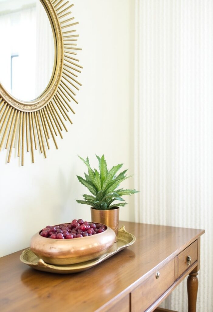 My favorite finds include large brass planters (perfect for statement plants), vintage serving carts with brass details, and those incredible sunburst mirrors that were so popular in the mid-century era. These pieces work beautifully in both traditional and contemporary settings, bridging different design styles effortlessly.